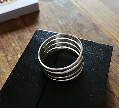 Pewter rings, made from strips of pewter that were cast in a Cuttlefish shell mould.